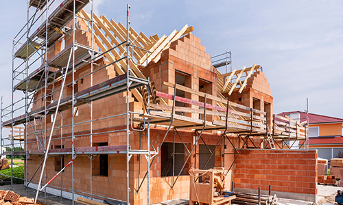 Erst mit dem Dachstuhl kommt Stabilität ins Haus.